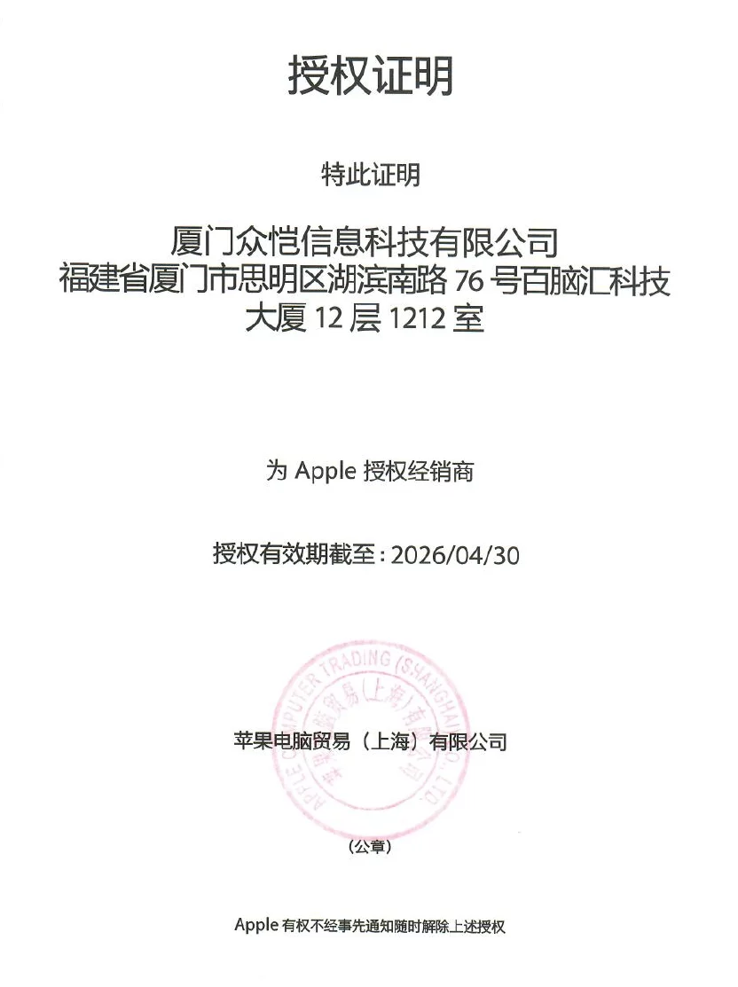 多年来,众恺科技凭借专业的服务和良好的口碑,赢得了各行业客户的一致肯定和好评,树立了卓越的企业商誉。公司始终以 “客户信赖、首选的苹果产品供应商、服务商” 为目标,不断提升自身实力。一方面,持续引进先进技术与产品,优化产品结构,为客户提供更为全面的现场解决方案;另一方面,不断拓展服务领域,推出加保服务、特约上门服务等一系列增值服务,让客户足不出户就能享受到优质的苹果产品相关服务。未来,众恺科技将继续深耕苹果生态领域,不断创新,为客户带来更多优质的产品和服务。